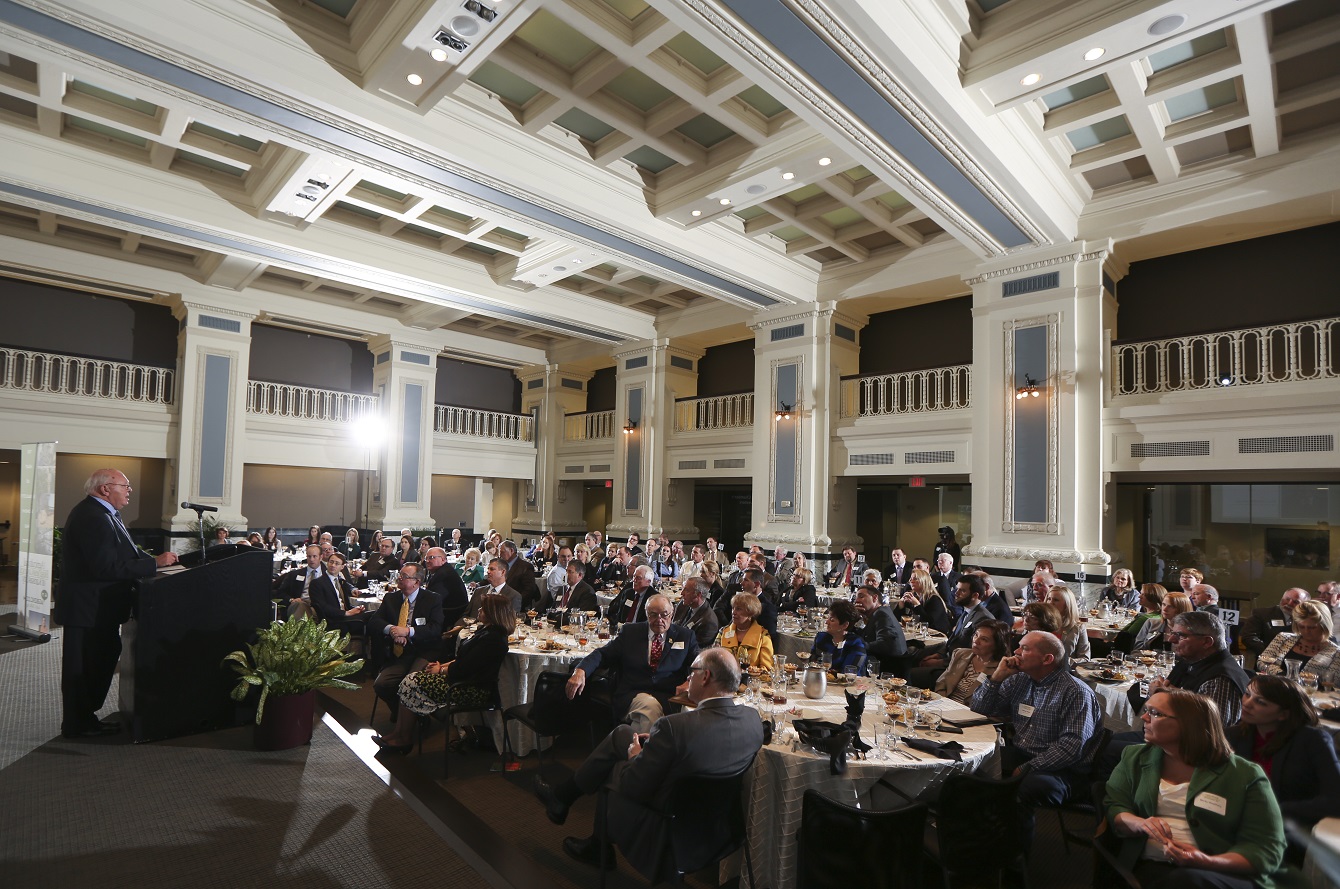 In his acceptance remarks, Senator Kit Bond, warned that “bureaucrats were fighting to stifle agriculture, and too many things were coming up to hinder agriculture from feeding the world.” In his introduction of the senator, John Dillingham, son of Jay B. Dillingham, described Sen. Bond as someone who could work across the aisles of Congress and “who knew the important role agriculture had in feeding the world in the 21st Century.” During his time in the U.S. Senate, Sen. Bond was recognized as an expert and leader on a wide range of subjects, including international trade and Asia; transportation and economic development; cyberintelligence and national security; and plant biotechnology.