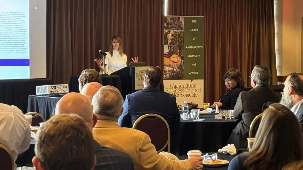 At its November monthly meeting, Camille Abrams, Senior Vice President Finance for energy, processing and food ingredients at CHS offered Agricultural Business Council members an overview of the energy challenges facing the agricultural industry. This breakfast meeting at the Sheraton Crown Center has become a tradition, held during the Agriculture Future of America’s Annual Leaders Conference.