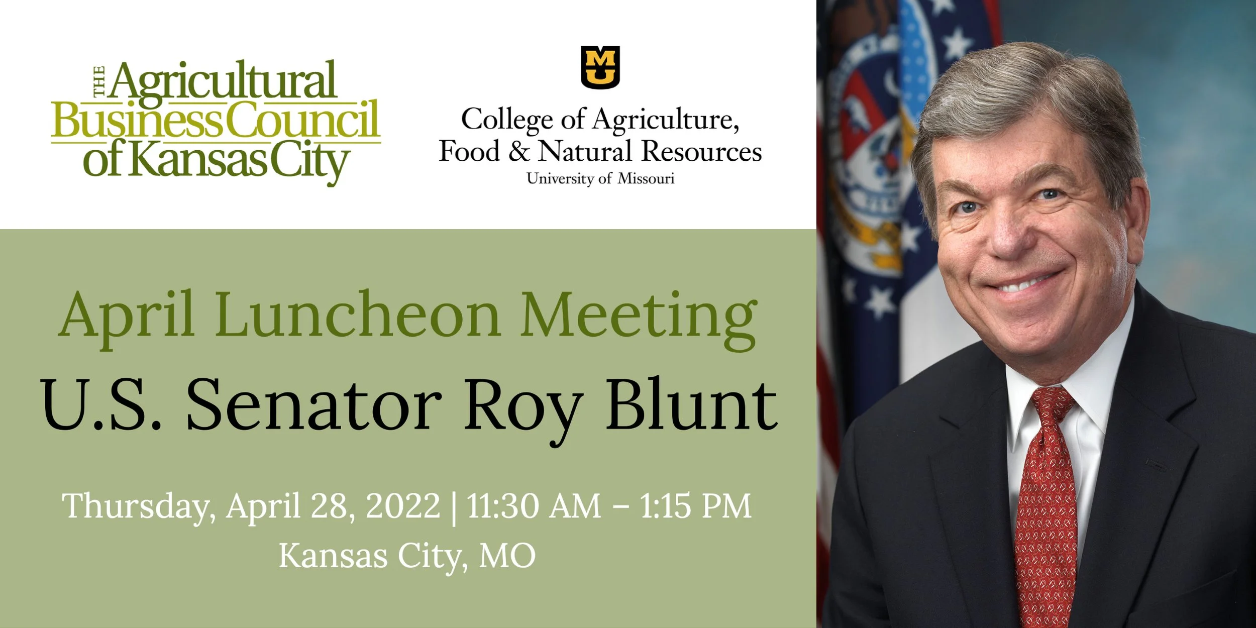 Please join us for our April 28 luncheon where we will honor Missouri Senator Roy Blunt for his many years of service and support to Missouri and Missouri agriculture.