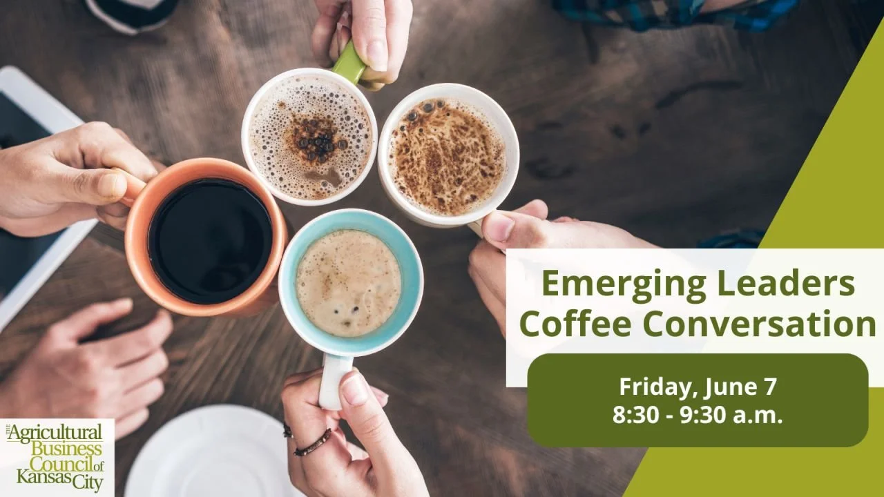 The Agricultural Business Council of Kansas City is presenting an Emerging Leaders Coffee Conversation, designed to bring young professionals and interns from the KC agriculture industry for connection, conversation and caffeine. You do NOT have to be a Council member to attend, and attendance is free. The event will feature a panel of agricultural leaders thriving in the Kansas City region. The discussion will highlight the ins-and-outs of working and leading in the KC ag scene. Enjoy a local breakfast beverage while steeping in exciting conversations to help you make the most of your experience in Kansas City agriculture. Your first cup is on us! Please RSVP by May 29 through this link.